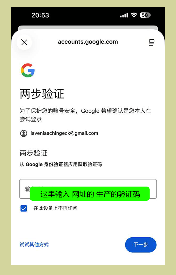 4 【数字的密钥】 已经发给你了 然后生成验证码 后 复制到谷歌 就可以了